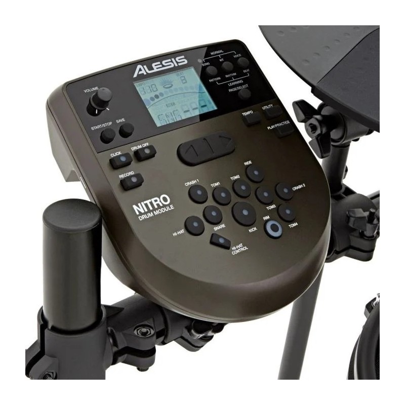 Le pelli mesh sono la preferenza schiacciante dei batteristi quando suonano kit elettronici a causa della loro sensazione naturale e della risposta ultra silenziosa. L'Alesis Nitro Mesh presenta un rullante mesh a doppia zona da 8" e 3 tom mesh da 8". Include tutto il necessario per creare un drum kit completo: 3 piatti da 10", pedale Alesishi-hat e pedale della cassa progettati su misura ed un resistente rack in alluminio a 4 montanti. Include anche tutti i cavi, l'alimentatore e la chiave della batteria per un facile setup. Tutto questo si collega al potente Modulo di batteria elettronica Nitro con centinaia di suoni di percussioni, 40 kit diversi e 60 tracce di riproduzione integrate. Il modulo Nitro è pieno di suoni e sorprese. Lo schermo LCD retroilluminato rende la navigazione un gioco da ragazzi. I pulsanti della batteria e dei piatti sono disposti in modo da assomigliare al layout di un kit tradizionale, quindi è semplice assegnare i suoni e creare rapidamente i kit. Il modulo Nitro viene fornito completo di 40 kit classici e moderni pronti per l'uso. Modifica facilmente qualsiasi kit esistente o creane uno tuo utilizzando i 385 suoni di batteria, piatti e percussioni di qualità superiore inclusi nel modulo Nitro. All'interno del modulo Nitro troverai anche preziosi extra. L'apprendimento integrato include 60 brani musicali da riprodurre e un metronomo integrato per migliorare le tue abilità. C'è anche un sequencer avanzato e un registratore di performance per espandere il tuo potenziale di creazione musicale.
