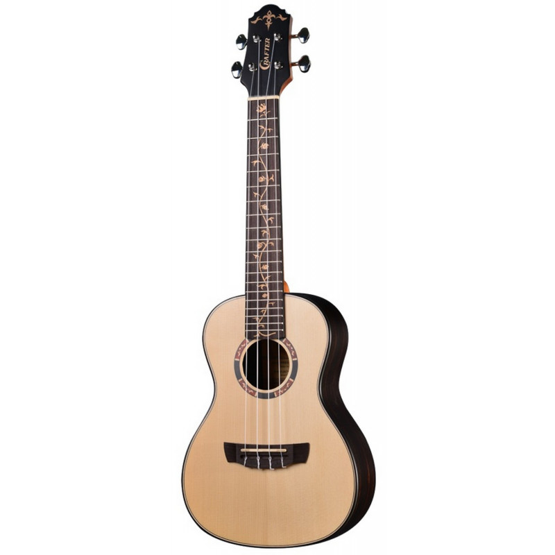 Crafter UC-27 è un ukulele concerto della serie Prestige dotato di tavola armonica in Abete solido, fasce e fondo in Ebano Macassar, meccaniche cromate e finitura naturale satinata, corredato di custodia imbottita.